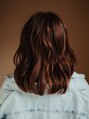チョコレートブラウンカラーが可愛いミディアムスタイルです。下におもたみを出させてまとまり感をだしています。顔まわりにはハイレイヤーをいれまとまりやすいように。