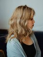 ダブルカラーで、透明感のあるハイトーンのベージュカラーです!カットは、レイヤーを入れて動きをだします。フロントはセンターに分けます。仕上げはウェーブをだしてコテで巻きます。毛先は外ハネにするのがポイントです。