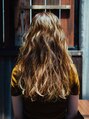 大流行のバレイヤージュで外国人風のカラーリングに!ベースとブリーチ部分のコントラストをしっかりめにつけて、スタイリングもハイライト部分をすくって上からウェーブを付けました。シアバターを適度につけウエット過ぎずドライ過ぎずな印象に!