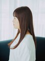シースルーバングが印象的なストレートロングスタイル!!バングは幅広めで、切りっぱなしのカットラインで軽くします。全体の髪もボリュームが出ないように毛量を調整します。カラーはベージュ系カラーで、明るさをだします。