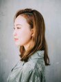 ひし形シルエットのふんわり大人ミディアムスタイル。毛先中心にパーマをかけ 動きを。カラーリングはミルクティーベージュに。ハイライトは入ってるので束感や透明感が出て大人度アップ!!