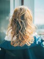 カットベースは表面にレイヤーをいれながらラフな動きを出しています。カラーは明るめのアッシュベージュで外国人っぽいくすんだ色を出しています。スタイリングは32ミリのコテでミックスで巻きラフな動きを出します!