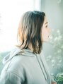 鎖骨あたりで少し前下がりになるようにカットしたナチュラルなミディアムスタイル。太めのコテでゆるーいウェーブになるように軽くアトをつけています。毛先を外ハネにすることでカジュアルめな今っぽいスタイルに仕上がります