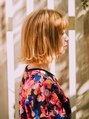 ハイトーンカラーに、ランダムに動くカールがかわいいスタイルになります!前髪をワンカールすることで、かわいさをさらにプラス!!ワンレングスのボブは重く見えてしまうので、毛先を少し軽めにし、外ハネにすることで軽やかに見えます!