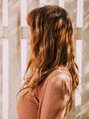 胸下の長さのロングスタイルにランダムなウェーブがかかったスタイルです。全体的にはフェミニンなスタイルですが、バングを短めに肌が透けるようにつくることで、大人っぽすぎないスタイルです。
