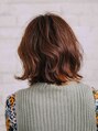 大きめウェーブの外ハネスタイルです!立体感のあるカットに動きをだします。大きめのコテで巻いてウェーブをだします。外ハネでメリハリをつけます。パーマなどでウェーブを作ると朝のセットも簡単にできます。オレンジ系カラーでツヤ感UP!