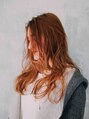 Aラインシルエットのロングスタイルです。カラーはハイライトを毛先にいくにつれて細かく多く入れオンカラー。ツヤ感のあるオレンジ系カラーを被せてます。全体をゆるく巻いて仕上げています。