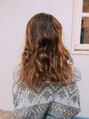 カジュアルにゆるっとした雰囲気にぴったりのスタイル☆トップからリップラインにかけてやや強めのウェーブから、毛先にかけては緩やかなIラインのシルエットに作ることによって、毛先が締まりかっこいいカジュアルテイストの雰囲気に