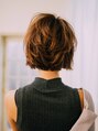 全体的に丸くなるようにシルエットを作っているのですが、襟足を少し長めに残し、エッジの効いたスタイルにしています。根元からふんわりとかわかして、アイロンかコテで動きをつけたあとに柔らかいスタイリング剤をふんわりとなじませてください!!