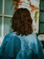 肩下で少し前あがり気味にカットしたミディアムスタイル。ボリューミーなウェーブがポイント!毛先は内巻きでカジュアルすぎない仕上がりになっています。バングは長めに残して大人っぽさもプラス!仕上げはトリートメントワックスで!