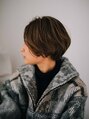 丸みのあるマッシュボブスタイルです!レイヤーがほぼ入っていないので重く見えがちですがボブのツヤ感とヘアカラーのハイトーンぐあいでとても透明感のあるショートスタイルになります!