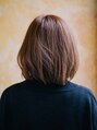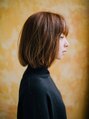 肩ラインのナチュラルボブ。表面には少しだけレイヤーを入れて、ふわっとした軽さをだしてあります。重ためなシルエットに仕上げていますが、シルエットを崩さない程度には毛量を調整してあげるとまとめやすいと思います。カラーは明るめハニーブラウン。