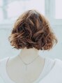 ショートボブにランダムで大きめのカールをつけたスタイルです。しっかりと段をいれてボリュームがですぎないようにカットしています。軽めのスタイリング剤を揉み込むようにしてつけるだけで簡単にスタイリングが決まります!