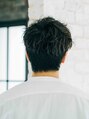 襟足とサイドは刈り上げ、マッシュベースで切ったスタイルに緩めのスパイラルパーマをかけました。スタイリング剤はジェルワックスで動きとセミウェットな束感をだし、前髪は軽く分けましたが、そのまま下ろしても雰囲気違いで楽しめます!