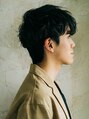 サイドと鉢回りをタイトに、襟足からナチュラルにつながるラインで刈り上げなのに柔らかさのあるパーマスタイル。フロント部分に大きくカールの動きがくるように巻いたのがポイント☆カラーはカーキアッシュ系カラーでカッコ良く、柔らか髪に!