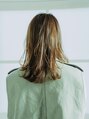 人気のミディアムロングの長さで表面にレイヤーを入れ動きが出やすい軽い仕上がりにしました。カラーは柔らかいベージュです。スタイリングは毛先をワンカール巻いてポイントで細束を取り緩く動きをつけ、オイルで仕上げました。