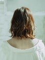 センターパートのクールな雰囲気のミディアムパーマスタイルです。カットはボブベースの重ためのスタイルですが無造作に動くパーマによって軽さを出しています。スタイリングはツヤがでるオイル又はバームがおすすめです。