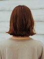 切りっぱなしボブがベースにカットし、首に沿ってくびれが出来るようセニングやレイヤーを入れ軽い質感にしたデザインです。カラーはナチュラルに艶っぽく見えるブラウン系です。前髪は無くし凛とした雰囲気を大切に作りました。