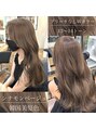 ブリーチ無しで柔らかいシナモンべージュ!赤みを抑えた色を楽しみたい方オススメ!柔らかい質感の毛流れと色味で可愛く上品に仕上げます。ブリーチ無しのダブルケアカラー で徐々に柔らかい色味にも可能です!