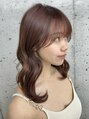 美髪カールピンクブラウン韓国レイヤーセミディ似合わせ前髪