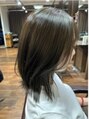 鎖骨くらいのベースに全体的にレイヤーを入れて軽さを出しつつカラーはベースもブリーチなしで明るくしてさらに細かいハイライトを入れることで柔らかいグレージュカラーを可能にしてます