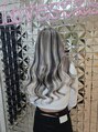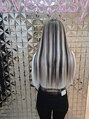 シルバー系ハイトーンに合わせるハイライトとローライトのデザインメッシュは誰よりも目立つこと間違いなし!