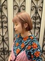 オレンジベージュ/ベージュカラー/ハイトーンカラー/ボブ