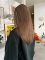 1ブリーチの暖色ミルクティーベージュで、柔らかく透明感のあるカラーに◎トリートメントで艶感UP!
