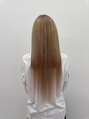 1ブリーチでなるべく明るく抜いてから1番明るいエクステに合うようにオンカラーして、エクステはベースをプルエクステ、エクステの接合部分が見えないように表面だけシールを取り付けました!シンプルだけど大人っぽハイトーンな仕上がりになってます!