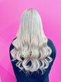 リタッチブリーチしてから黄ばみのないホワイトカラーに!1番明るいエクステを80本でハイトーンロングの完成★髪の履歴や状態にもよりますがホワイト系はブリーチ2回必須となります!ハイトーンロングを楽しみたい方にぜひオススメです!