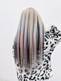 黒染め履歴のある髪から2回のブリーチで残留とってからなるべく明るくオンカラー!エクステは白ベースに青と黒のエクステをハイライトっぽくランダムに混ぜて派手派手styleに♪特にハイライトの青は目立たせたかったので表面から見えるよう付けました★