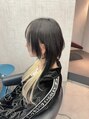 カットとエクステでロングウルフスタイル★カットはボリュームラインが下がっていたので、くびれさせて綺麗なシルエットに!エクステは横には付けず襟足を長くロングウルフデザイン★紙インナーは金で、前髪はプルシールエクステでデザインしています♪