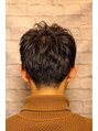 サイドを6ミリツーブロックベースに、上はミディアムショートで乗せて、後ろは刈り上げず厚みを残しながらも短か目にしました。セットは高さを出しつつもやり過ぎない絶妙なバランスで落ち着いた大人の男を印象付けます。大宮/メンズカット/メンズパーマ