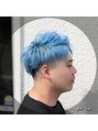 メンズカット/ダブルカラー/フェード/アップバングショート/ブリーチ/水色/ハイトーンカラー