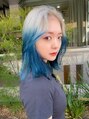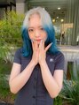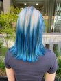 ハイトーンルーツカラー♪ホワイティな根本にアクアブルーを。トレンドブリーチスタイル、デザインカラーもお任せください♪気に入ったスタイルはブックマークよろしくお願い致します♪