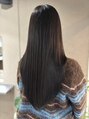 顔まわりだけアゴの高さからレイヤーを入れてワンカールでスタイルが決まるストレートスタイル。暗めカラーはワンレンだと重くなりすぎるのでレイヤーを入れる事で軽さを出し厚みを減らしています!