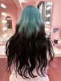 エメラルドブルー/ルーツカラー/デザインカラー/波巻き/ロング