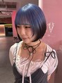 青/ブラック/切りっぱなしボブ/デザインカラー/学割