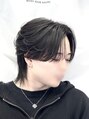 ブルーブラック/フェザーパーマ/刈り上げセンターパート/メンズ