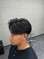 前下がりセンターパートにニュアンスパーマをIN直毛でもニュアンスパーマをかけるだけでリバースの毛流れが作れます☆オイルでかきあげても良し、ワックスでカチッとビジネススタイルも良し!