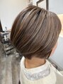 ミルクティーベージュ白髪ボカシハイライト頭のかたちを見ながらどこにボリュームの位置を決めるかで頭のかたちをよく見せ小顔にも見せます!カラーをするとしみる方は認定オーガニックカラーがおすすめです!泥のミネラルが豊富に入ったカラーです!
