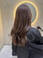 透明感を大切に、赤みを抑えたやわらかいカラーでツヤ感のある仕上がりに。髪質や履歴に合わせて薬剤を調整し、色落ちまできれいに楽しめるようデザインしています。