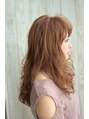 ラインは重め、でもトップに空気感のあるレイヤースタイル。トップや前髪まで強めのパーマにしてエアリーに仕上げ、小顔効果を出す。