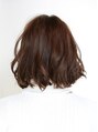 レイヤーを少しいれ、パーマで動きをつけたミディアムスタイルです。毛先と中間をスパイラルで巻いて束が重ならないようにして動きをだしています。