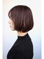 レイヤーを入れ、乾かすだけでまとまりやすいショートボブスタイルです。ワンレングスだと重すぎるので毛先は先細りにスライドカットでやや薄く。