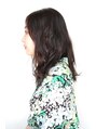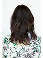 セミロングのウェーブスタイルです。毛先、中間にかけたデジタルパーマでラフな動きをつけています。巻き方はフォワードとリバースを段ごとに変えていますので重ならない強めにランダムな毛流れをつくれるのです。