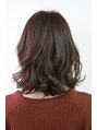 コールドパーマで動きをつけた無造作なミディアムレングスのウェーブヘアです。すべておなじ方向に巻いてパーマをかけているので、ドライヤーでねじりながら乾かしてスタイリングしても良し、ムースをつけて放置しておいても良いスタイルとなっています。