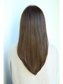 ストレートのセミロングスタイルです。光沢感を出すためにまっベージュカラーでどの位置から見ても綺麗に髪を見せたい方にオススメです。つやはもちろんまとまりを出す為にレイヤーは入れすぎずていませんのでスタイルリングも楽ちん。
