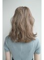 全体的にレイヤーを入れて軽めのスタイルにしています。カラーは12トーンのブロンドベージュでキュートな感じに仕上げました。32ミリのコテで低めの温度でハチより下を外ハネで巻き、ハチ上の部分を中間巻きをし、毛先ワンカールで巻きます。