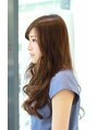Aラインシルエットのロングスタイルです。バックはほぼワンレングスですがトップと顔まわりはレイヤーが入っていますのでカールによるラフな動きが出やすいスタイルです。
